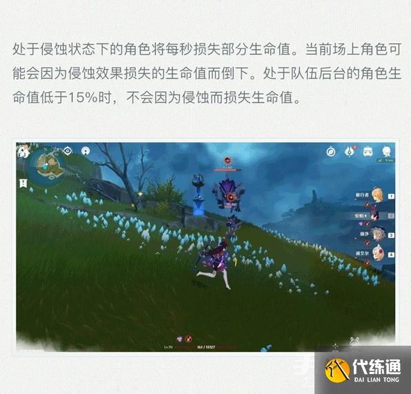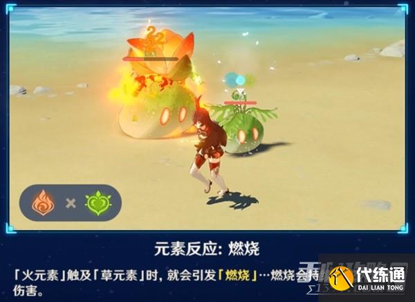 ④(高频率)燃烧,在大世界存在草地的地形,使用火元素攻击草地,能使草地燃烧,角色站在燃烧的草地上会受到伤害,所以这能够作为花海套的叠加条件;