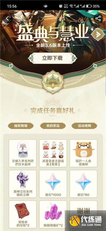 1、随着原神3.6版本的更新,tap平台终于豪气一回了,玩家参与活动就能拿到80原石奖励。