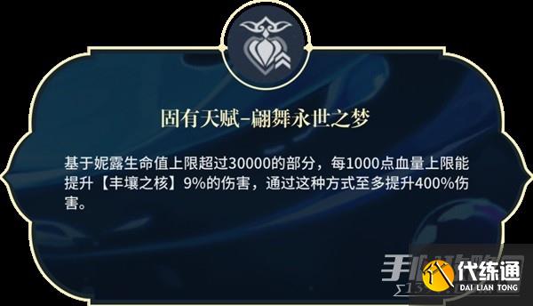 根据妮露的生命最大值提升处于「金杯的丰馈」状态下的角色触发的种子伤害,最多提升400%!