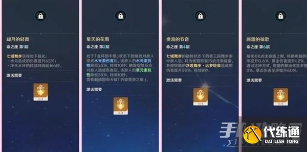 2命:提升妮露绽放队伍整体伤害约20-30%(队友有草套的情况下约20%、无草套约30%),前提是要处于天赋「金杯的丰馈」下才触发,可以抽取。