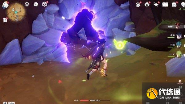 从大地图锋刃林泽四个字上方的传送锚点,跳下悬崖进入洞窟,洞窟入口如下图所示。