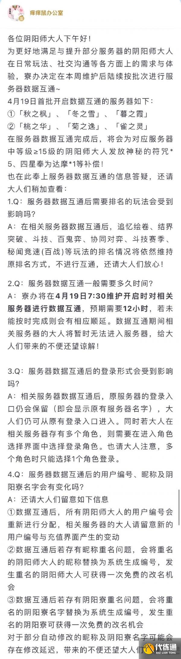 阴阳师已经从4月19日开启了首批数据互通的服务器,很多玩家好奇都有哪些,下面小编为大家带来阴阳师数据互通服务器分享,感兴趣的小伙伴一起了解一下吧。