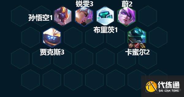 前期如果用4斗士+2AI+2护卫的羁绊打工,卡蜜尔在前期可以带着盖伦的装备打工,AI程序的效果尽量选加攻击力的。卡蜜尔二星得早就可以走连胜,否则推荐走连败。