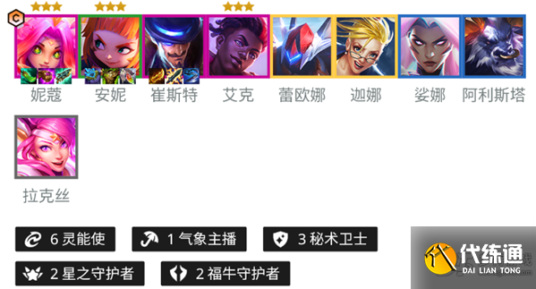 (2)阵容羁绊:3小天才+2星之守护者+2灵能使+2护卫