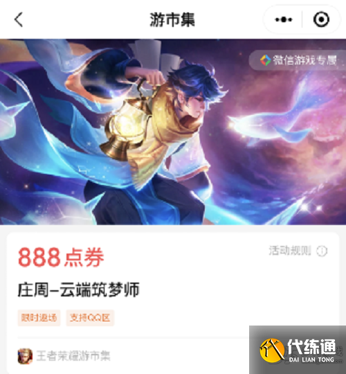 2、进入游市集之后,选择王者荣耀游戏,就可以直接看到庄周筑梦师的返场;
