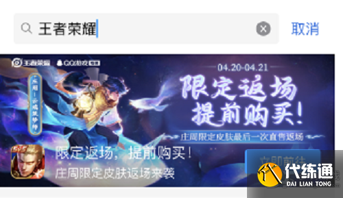 1、进入qq之后,在上方直接就会有庄周筑梦师的返场,如果没有就搜索王者荣耀就会有了;