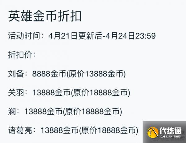 王者荣耀英雄金币折扣活动 王者荣耀英雄金币折扣在哪里