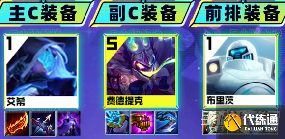 2阶段:前期开局拿到艾希、雷克顿、布里茨的英雄强化就可以考虑玩这套阵容,除了布里茨以外,艾希和雷克顿这两个英雄强化都是需要追3星的。