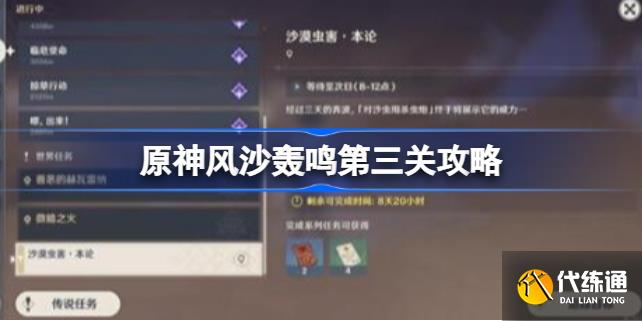 原神风沙轰鸣活动已经进行到第三关了,很多玩家不知道沙漠虫害本论要怎么应对,下面小编为大家带来原神风沙轰鸣第三关攻略,感兴趣的小伙伴一起了解一下吧。