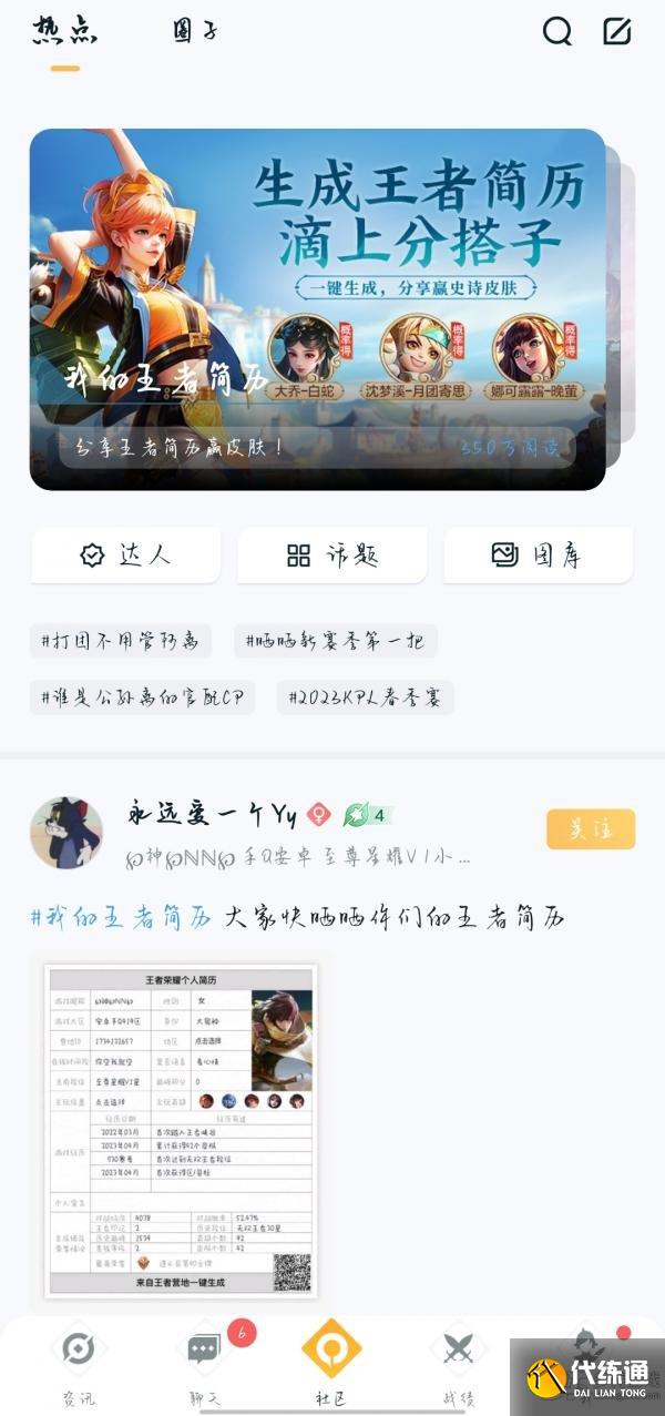 王者荣耀个人简历是王者营地app中的一个新功能,大家可以在营地中搜索后一键生成自己的王者简历,下面为大家带来的具体内容和方法,感兴趣的玩家们千万不要错过哦!