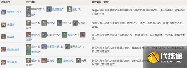 帕蒂沙兰可用于多种食物的烹饪,针对服用后不同效果,旅行者可选择性烹饪,避免浪费食材。
