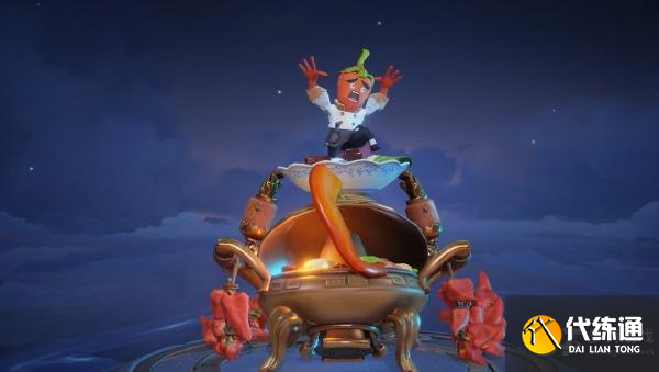 将太乙真人的丹炉以火锅为创意主题进行设计适配。丹炉设计上融入火锅的铜锅元素,丹炉上原本连缀的铁链变为辣椒相连,丹炉的舌头则使用了牛油火锅元素进行视觉传达,让人不由想到吃到辛辣食物时的状态,太乙真人则化身为火爆辣椒,他的药剂瓶则变为止辣醋瓶,整体形象十分生动。