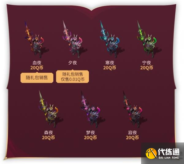 中,黑夜使者内瑟斯夕夜随礼包销售且仅售1点券