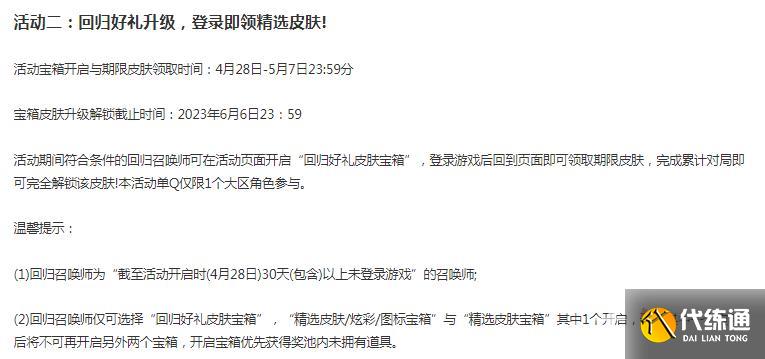 参与条件:2023年4月28日前累计30天或以上未登录《英雄联盟》的玩家