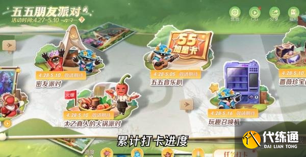 参与朋友派对累计打卡进度,领露营派对击败特效;