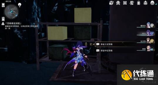 先拿起左边货架上的上层货箱,将其放置在右边货架的中层上,就可以解锁宝箱3啦;