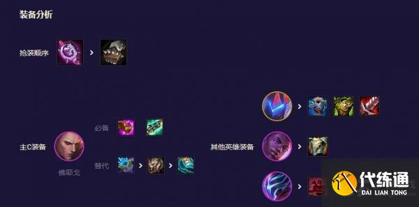 (1)优先给佛耶戈找装备,法爆+回复装必备,第三件可以补离子或泰坦。