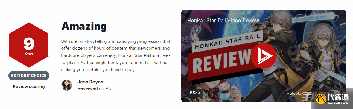 《崩坏:星穹铁道》发布两周后,IGN为其打出了9分+编辑之选的好成绩,称赞其故事情节出色,内容丰富,且并不骗氪。