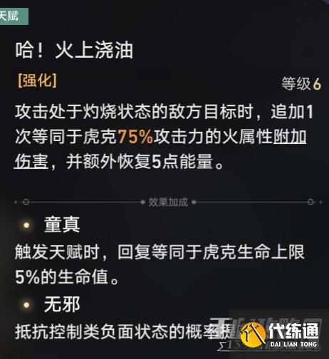 虎克大人攻击灼烧伤害状态的敌人时候,还可以追加一次攻击,并恢复能量,而且还有回血能力。