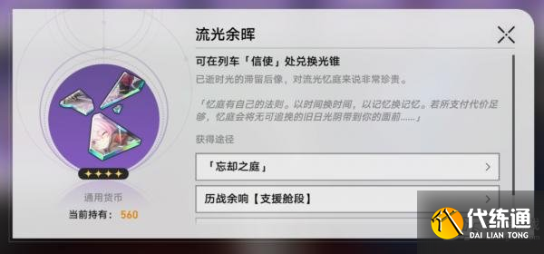 如果是细心的小伙伴,一定发现了忘却之庭的专属货币:流光余晖。这类货币在打周本时也能获得,可以在忘却之庭兑换指定的四星光锥。