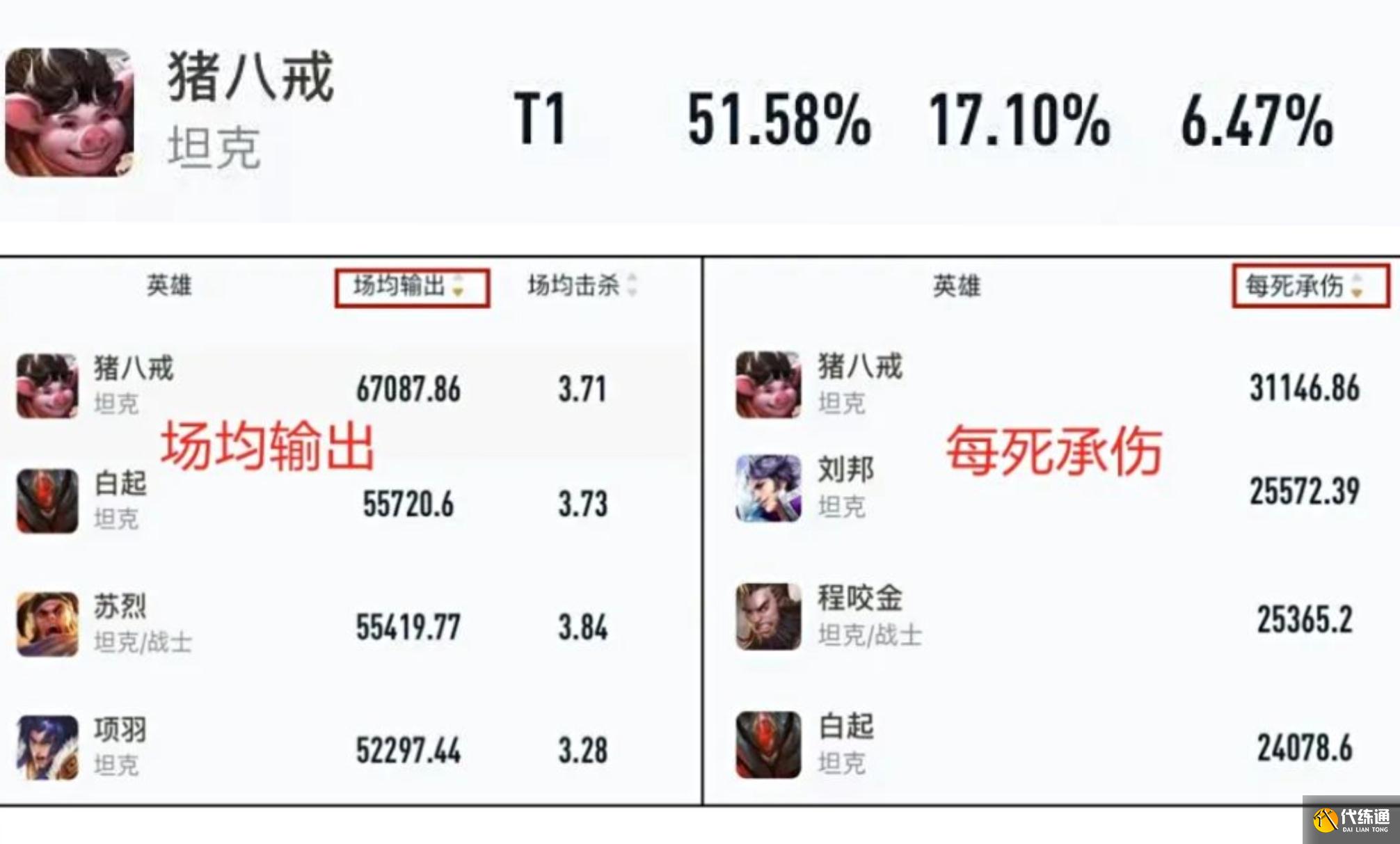 ?猪八戒:坦边一哥(具体数据参考下图)
