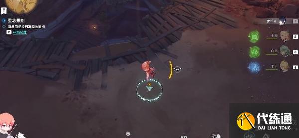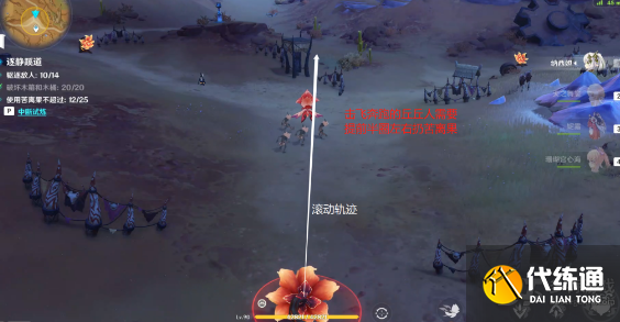 1、首先来到下图荼泥黑渊西南位置,玩家需要驱逐14个敌人,破坏20个木箱和木桶,并且投放苦离果不超过25次;