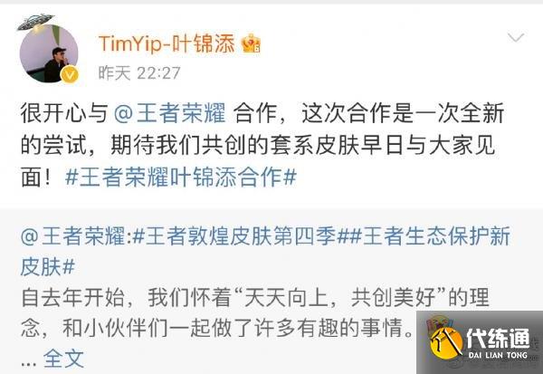 王者荣耀叶锦添合作怎么回事 王者生态保护新皮怎么样