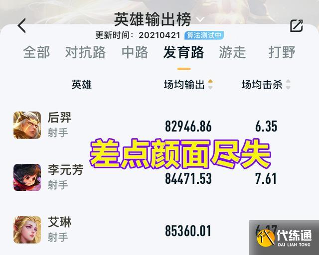 在中后期,后羿不是被秒,那么就是持续的高伤害秒掉对手,也不会和对手进行纠缠,所以后羿的输出大部分都是实打实的输出,而非无效输出,如果你这么想的话,后羿的场均输出低就能解释得通了。
