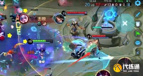 2、然后到了四级就可以打团了,一定要注意敌方的技能和血量,等都消耗了,利用好二技能的无敌免疫,我们直接过来收割。