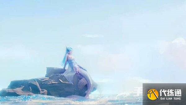 4、从王者荣耀官方公布的海报图来看,美人鱼英雄身穿淡蓝色的服装,尾巴的颜色并不是纯蓝色,有一点紫色的感觉,但她的发型也是蓝色的,应该还加入了一些粉色的装饰;