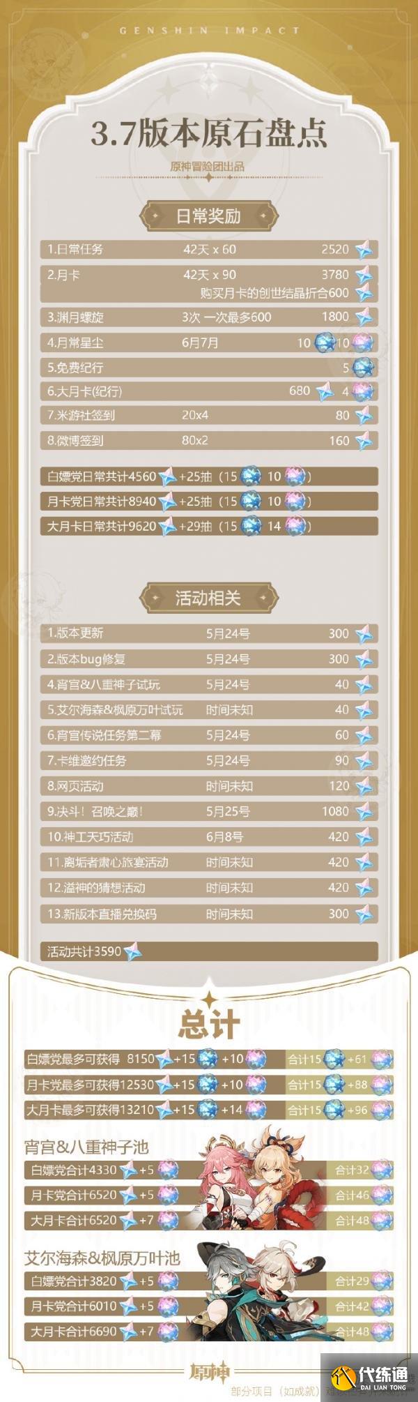 3.7版本终于要更新了,我们根据已有的信息对3.7版本获得的原石数量进行了计算,每部分还有详细依据,方便大家心中有数。
