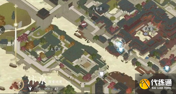 1、首先,来到任务地点坐标为(1185,968)的位置处,也就是在甜水巷附近的位置。