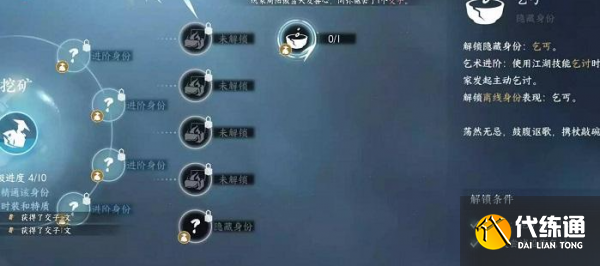 2、接着当玩家成功的乞讨一次之后,接着就可以在【身份-挖矿】栏目中解锁隐藏身份乞丐。