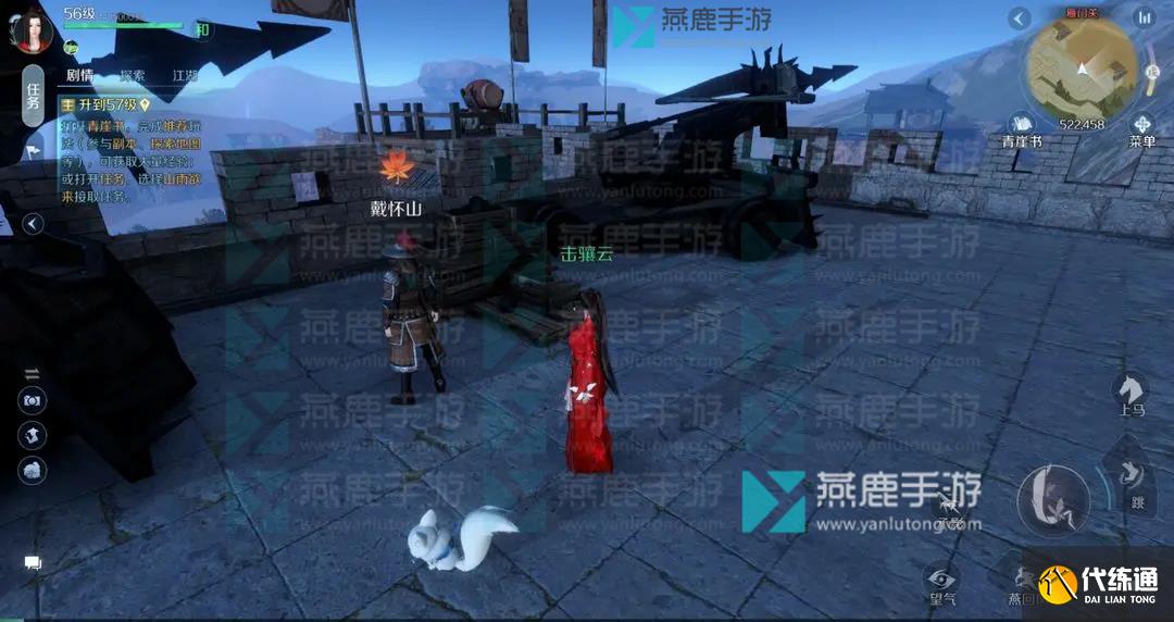 2、前往雁门关,坐标【523,458】npc戴怀山附近。