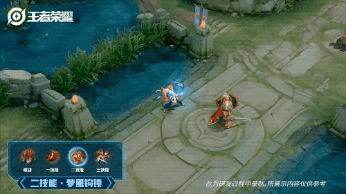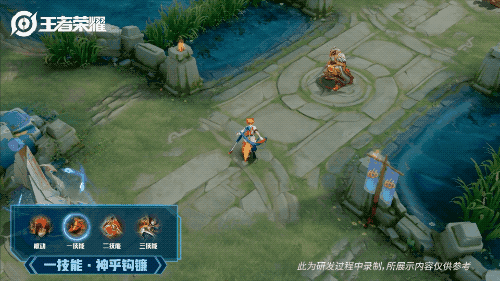将百里玄策设定为一个使用回旋镖的运动少年,延续了张扬和外向的英雄气质,在操场上奔跑挥洒汗水,完成了一套非常帅气的回旋镖表演,最后身后出现的“别跑,目标就是你”也是格外有趣。