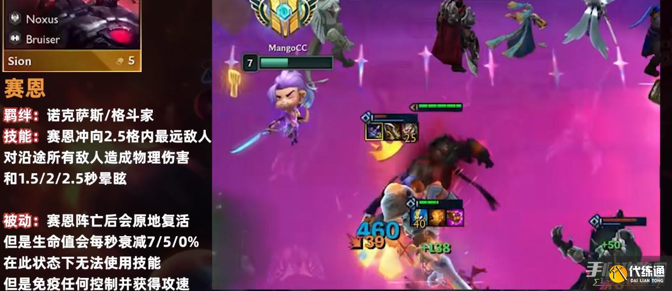 技能:赛恩冲向2.5格内最远敌人,对沿途所有敌人造成物理伤害和1.5/2/2.5秒晕眩。
