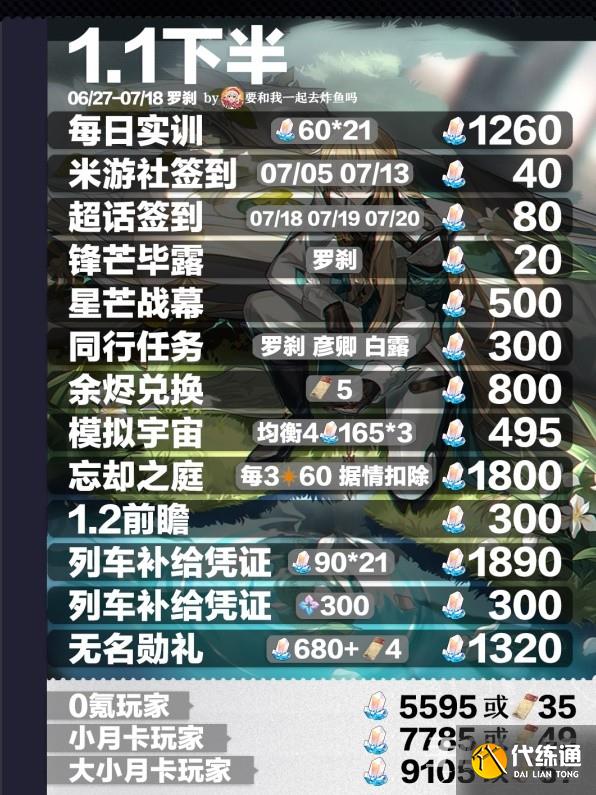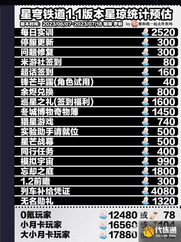 《崩坏星穹铁道》1.1全星琼获取数量汇总