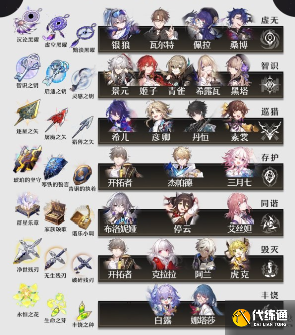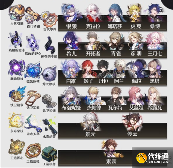 崩坏星穹铁道1.1版素材有什么 崩坏星穹铁道1.1版全角色养成素材表