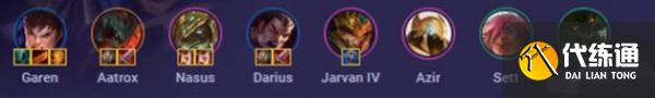 1、阵容成员:诺手+剑魔+狗头+盖伦+皇子+沙皇+瑟提+狼人