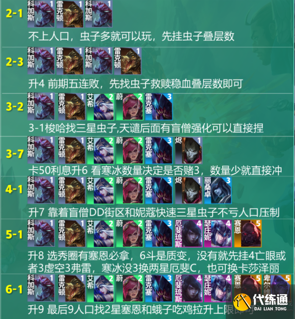 2-3升4,前期五连败,先找虫子救赎稳血叠层数即可。