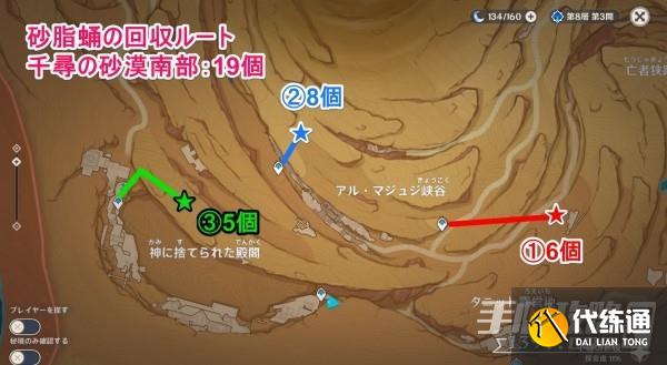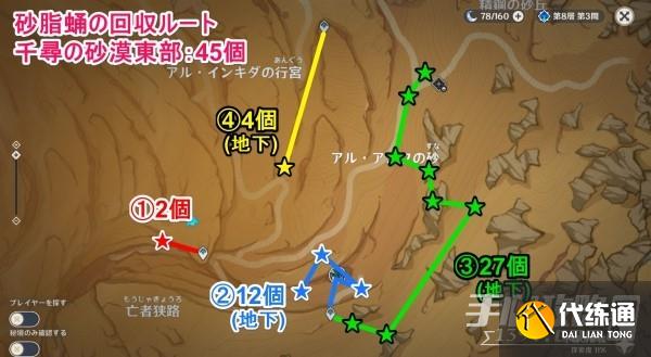 ※下方介绍的是全部74个沙脂蛹的收集路线,培养1名角色需要168个沙脂蛹,可以分3次收集。