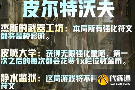 2、皮城大学:获得无限强化符文重随次数,但第一次之后每一次都会花费1x栏位数金币。