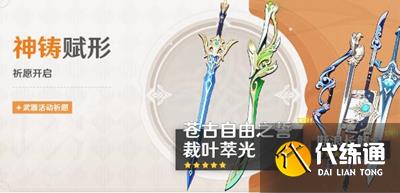 4.活动期间,可使用「神铸定轨」对本期5星UP武器单手剑【裁叶萃光】或单手剑【苍古自由之誓】进行定轨,更多「神铸定轨」详细规则可点击祈愿界面左下角【详情】按钮进行查询。