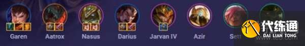 1、阵容成员:诺手+剑魔+狗头+盖伦+皇子+沙皇+瑟提+狼人