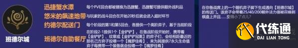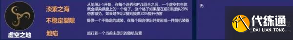 淡紫之海:从2-1开始,每个选秀和野怪回合后,棋盘上的一个格子就会被感染,如果格子在前两排,就会获得20%减伤,在后两排,则会获得20%的增伤。