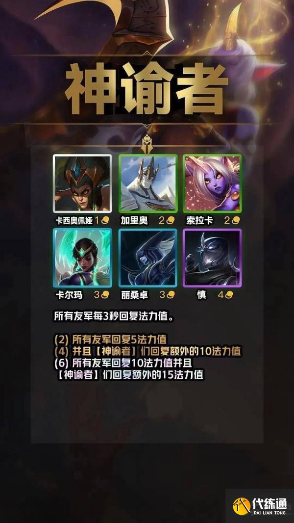 金铲铲之战游戏里面每一个职业都是有自己特有的属性加成的,而且不同的职业可以使用选择上也是不一样的,那么有哪些棋子是神谕者职业呢,下面就让我们来看看金铲铲之战S9神谕者职业一览。