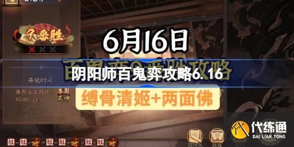 阴阳师6月16日开启的百鬼弈关卡,本周共用缚骨清姬和两面佛,下面小编为大家带来阴阳师百鬼弈攻略6.16攻略,感兴趣的小伙伴一起了解一下吧。