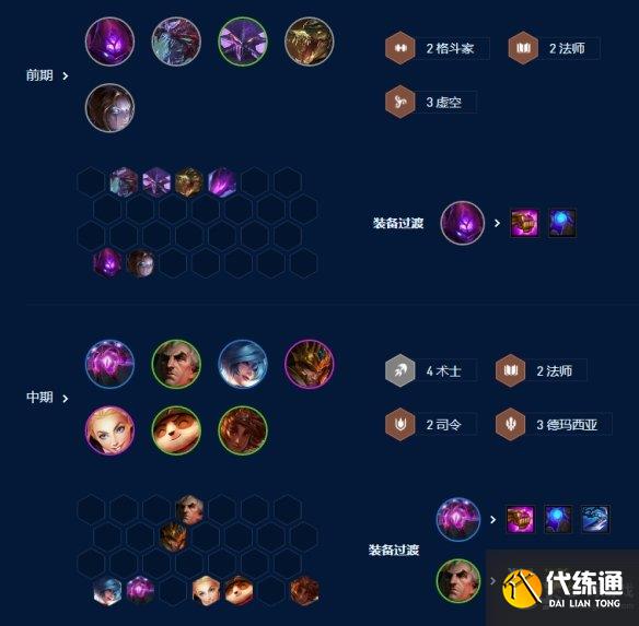 开局推荐3虚空2法师2格斗过渡。输出装备给到马尔扎哈打工。前排装给到二星斗士打工。
