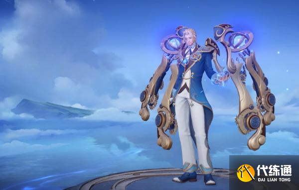 作为机关天才,鲁班大师一直以来给人以睿智、严谨的形象感受,他沉醉于美妙的科研之中,心无旁骛。而这一次,因为对阿科米亚秘术的好奇,他前往海都进行学术交流,继续着别样的学者旅途。基于鲁班大师的人物特质,我们利用海都的主色调蓝色,将其包装为睿智的学者形象,而作为海都的贵客,他也身着异域风格的欧式正装亮相,机械臂也增加了更多流动感强烈的装饰氛围。