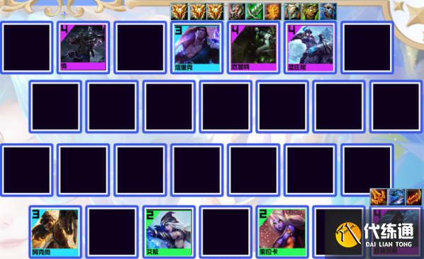 2、阵容羁绊:3巨神4前手2堡垒2弗雷尔卓德2神愉者